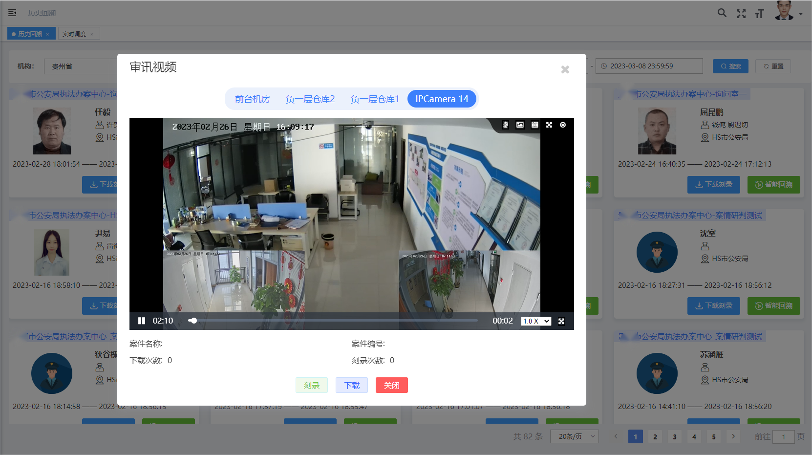 智能云审讯管理系统是在符合公安机关同步录音录像工作规定要求下,以“便捷、智能、高效”为理念,设计并自主研发的在执法办案区中用于审讯音视频管理的综合服务系统。通过云服务技术、视频画面合成技术、视频刻录技术和AI智能分析技术,将审讯服务由传统的审讯主机模式转向云审讯服务模式,替代传统线下实体审讯主机,便于审讯音视频集中管理、历史记录可追溯、节约办案区建设成本,扩展丰富的应用场景。